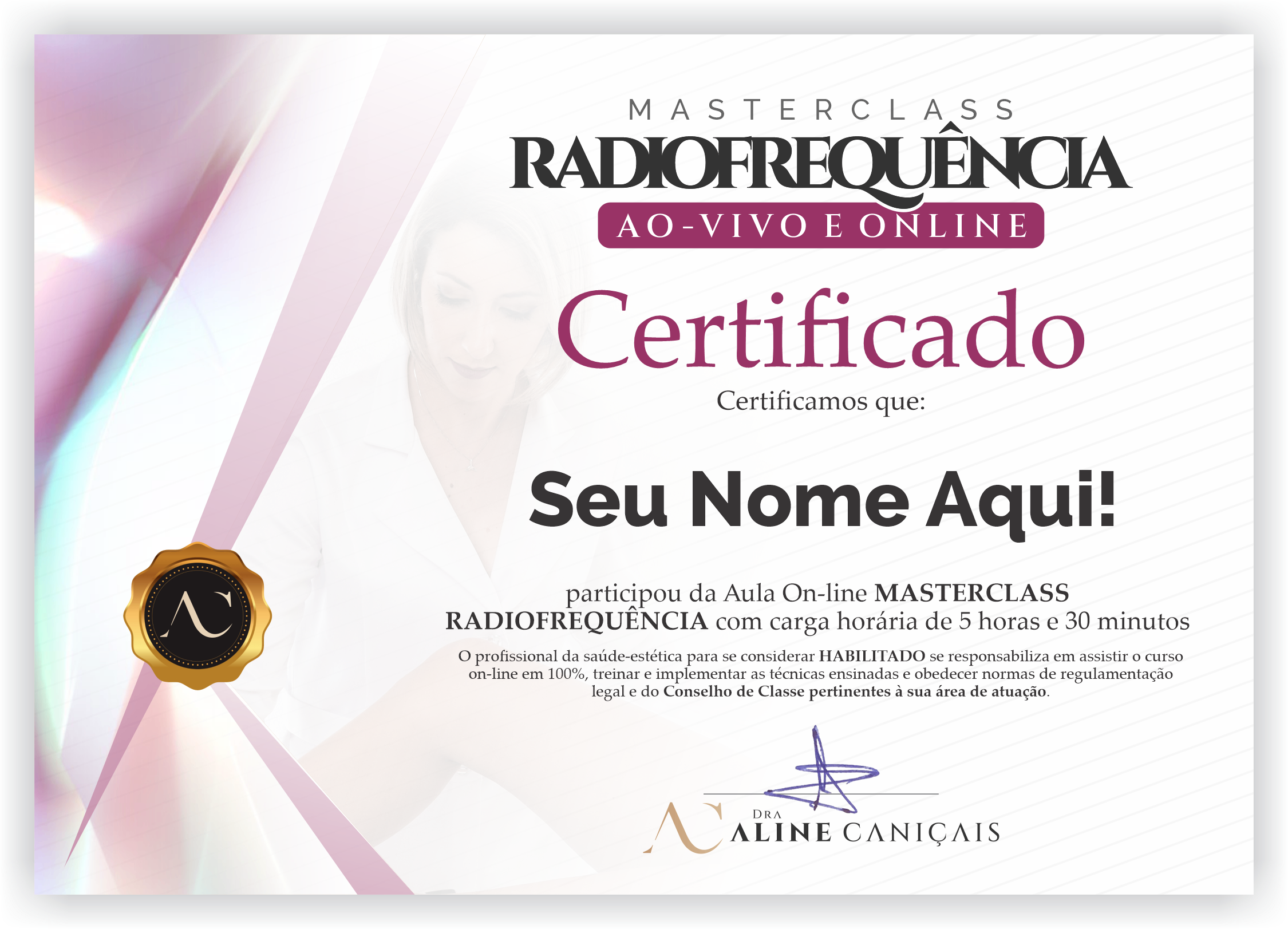 Fazendo parte da MasterClass Radiofrequência você receberá